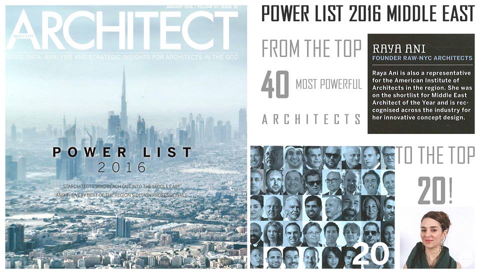 We are ecstatic to be on the power list again, this time the top 20 most powerful architects in the Middle East from the top 40!
