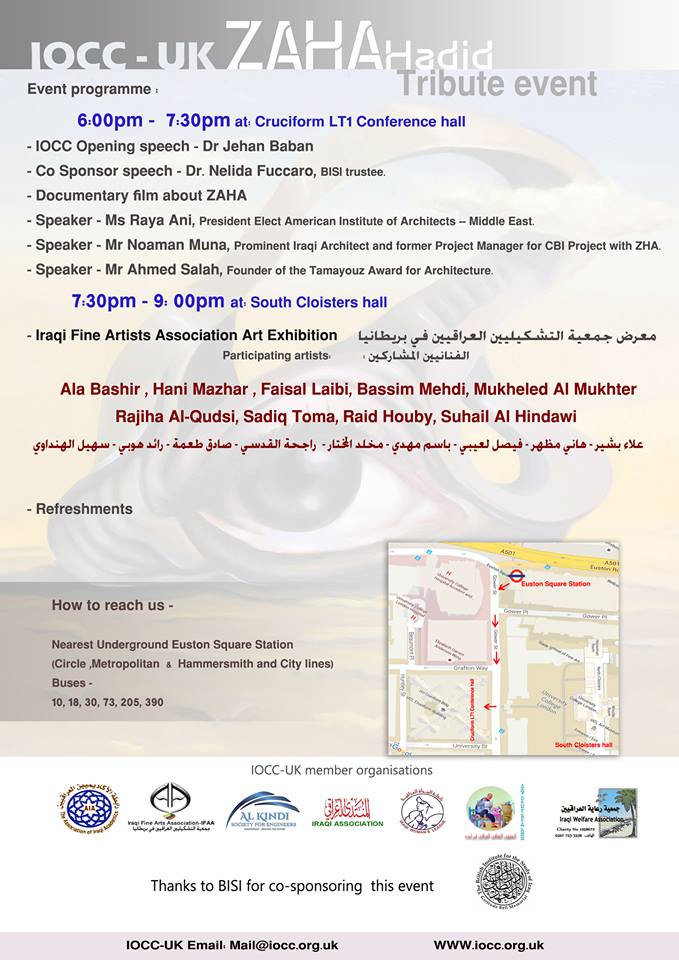 "I am honored to be a keynote speaker at Zaha Hadid’s tribute event in London next week. The event is organized by the Iraqi Community in the UK and is open to all."- RAYA ANI