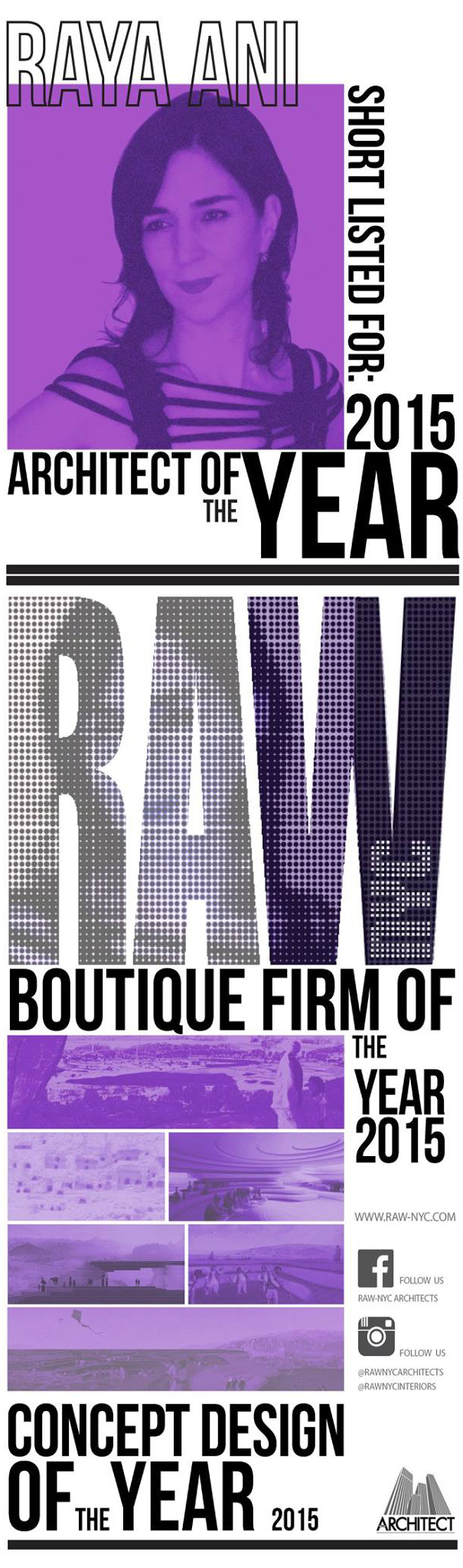 RAW-NYC Architects have been shortlisted for 3 categories in the Middle East Architect Awards 2015:
