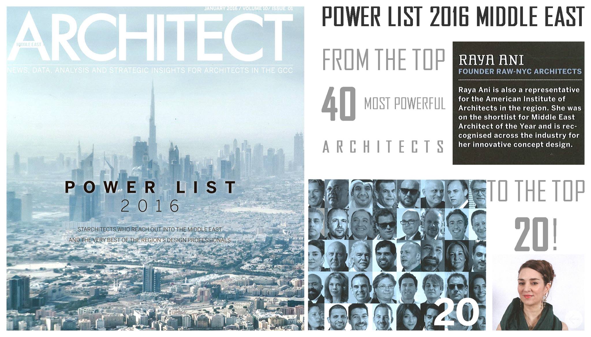 Raya Ani selected as top most Powerful Architects in the Middle East