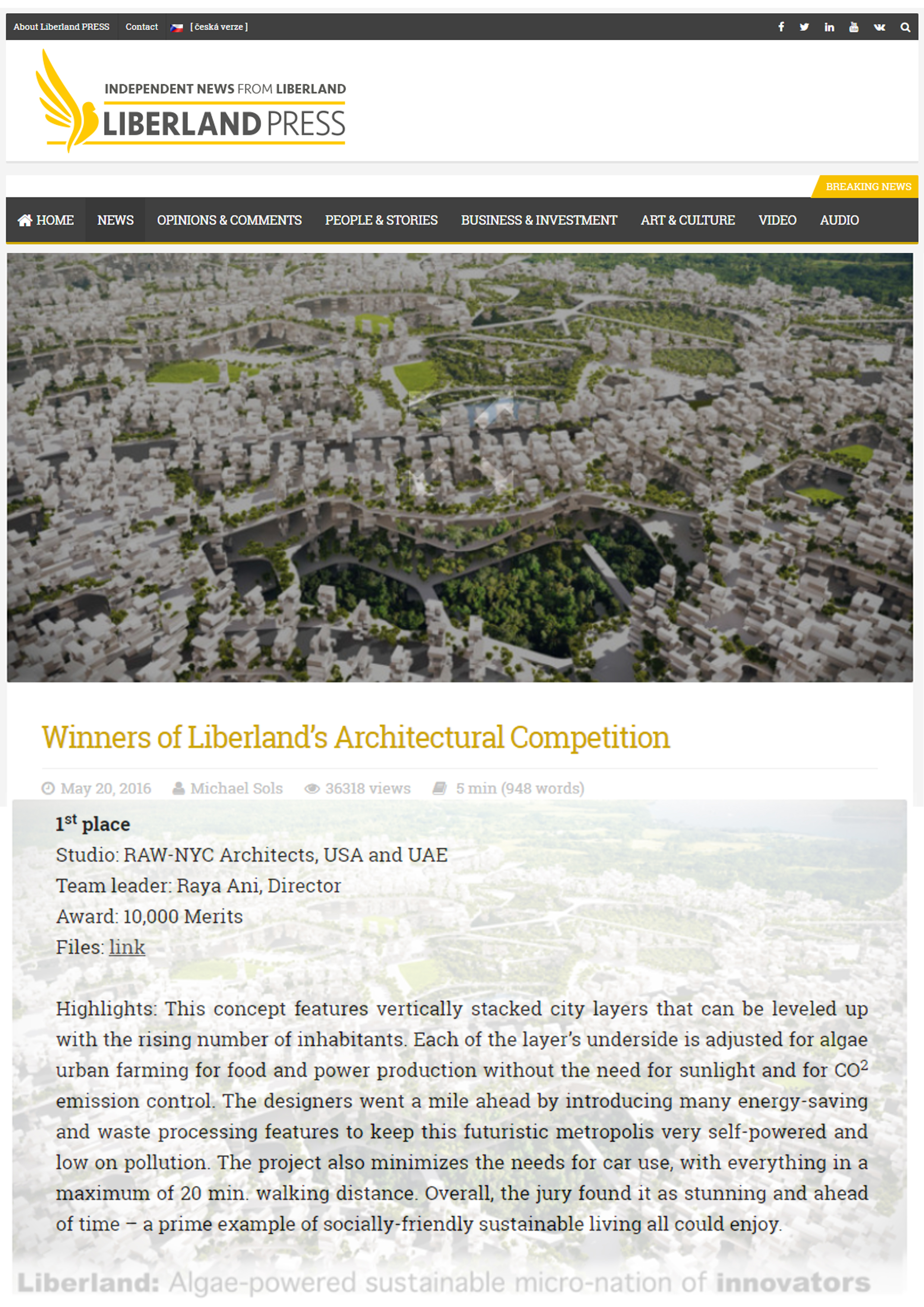 RAW-NYC Architects won first place in the design competition sponsored by the Free Republic of Liberland, the world’s newest micro nation, located along the Danube between Croatia and Serbia.